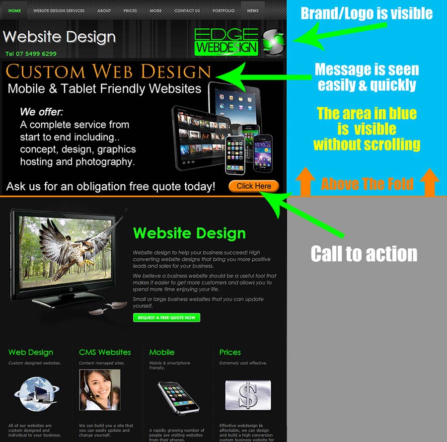 As you can see from our infographic we have ensured the following are all above the fold.